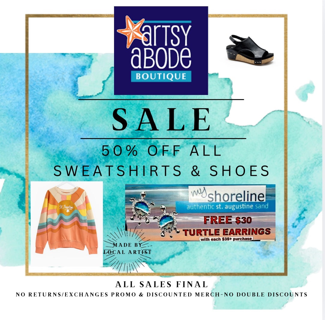 This crewneck blends nostalgia and comfort with its vibrant coastal design and soft feel. It’s perfect for cozying up on cool beach mornings or exploring downtown St. Augustine in effortless style.
