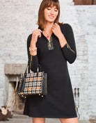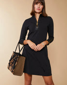 A sleek half‑zip dress with vegan leather accents that elevate your everyday. Flattering, comfortable, and ready for desk‑to‑dinner.