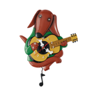 Strike a chord of whimsy with this playful wall clock featuring a guitar-strumming pup, bone-shaped clock hands, and a swinging music-note pendulum.