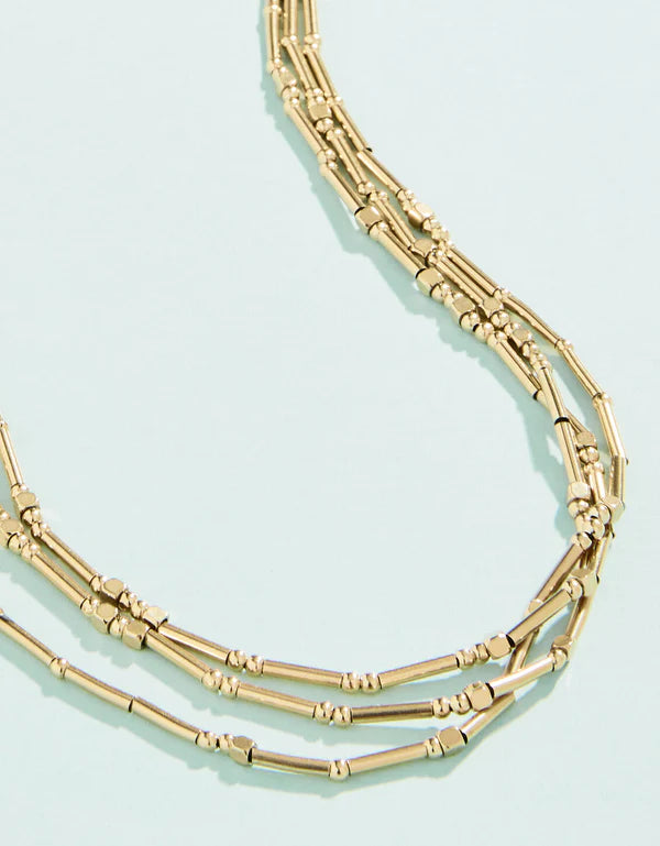 This Mermazing Necklace wraps your neck in three layers of mesmerizing tiny metal beads. Designed to shine through everyday wear, exercise, showers and a summer at the beach in tarnish free 14kt gold vacuum plating. This is a necklace you will never have to take off.