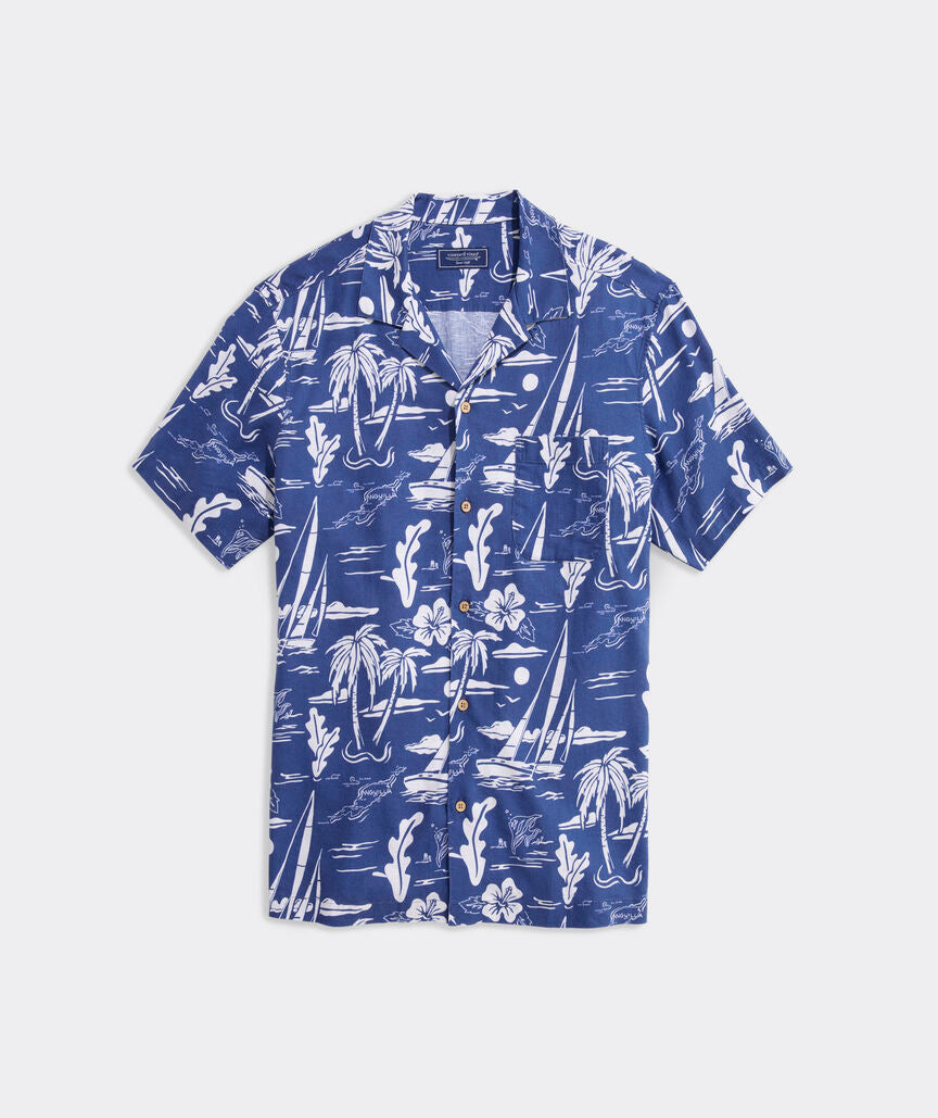 Anguilla Scenic Linen Blend Short-Sleeve Cabana Shirt