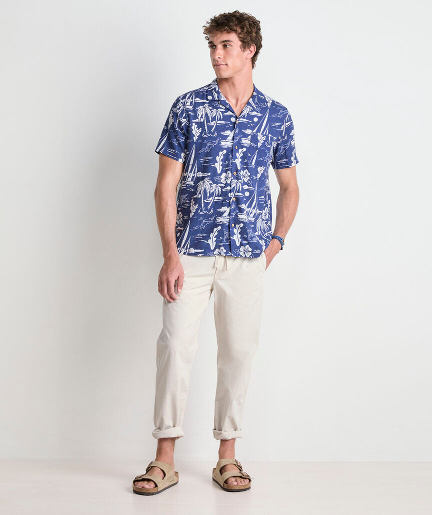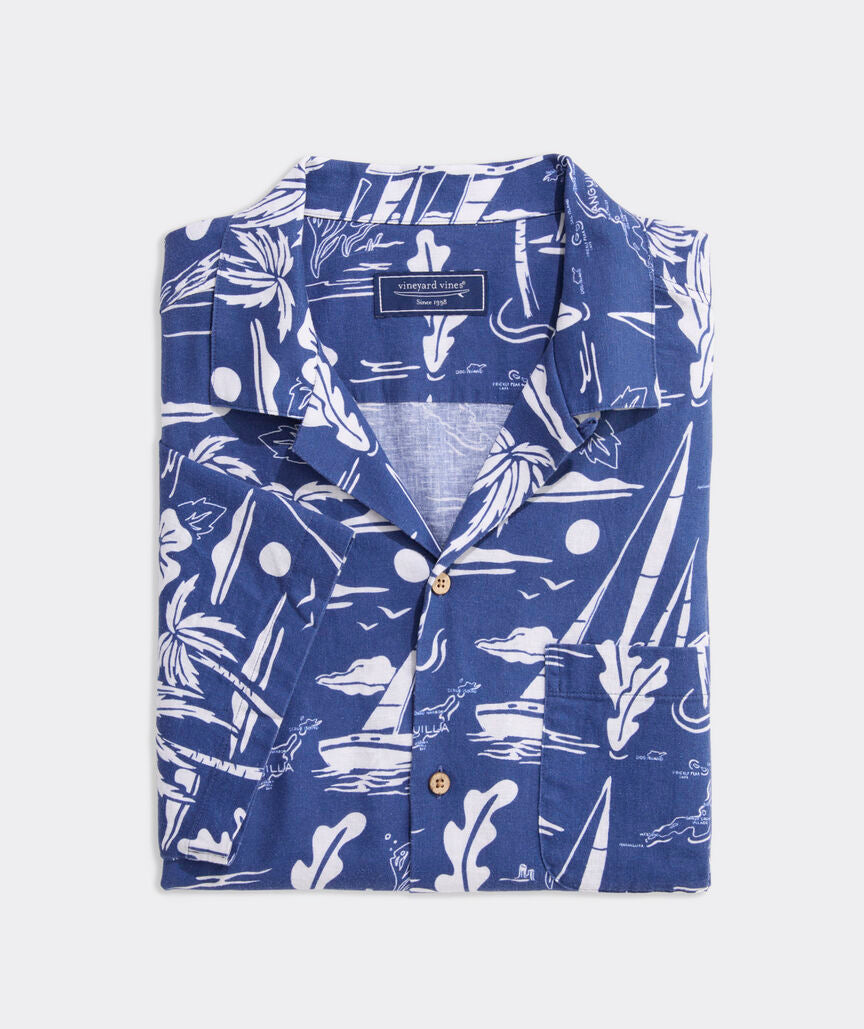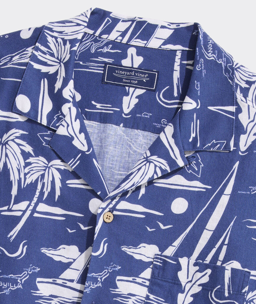 Anguilla Scenic Linen Blend Short-Sleeve Cabana Shirt