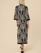 A breezy midi that moves with you, finished in coastal‑cool Bridge Street Palms Black.