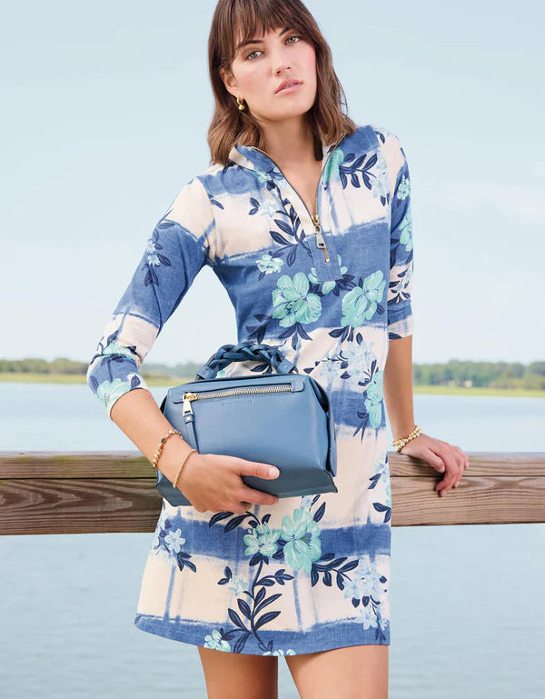 Nora Half‑Zip Dress – Serpentine Floral Pane Blue