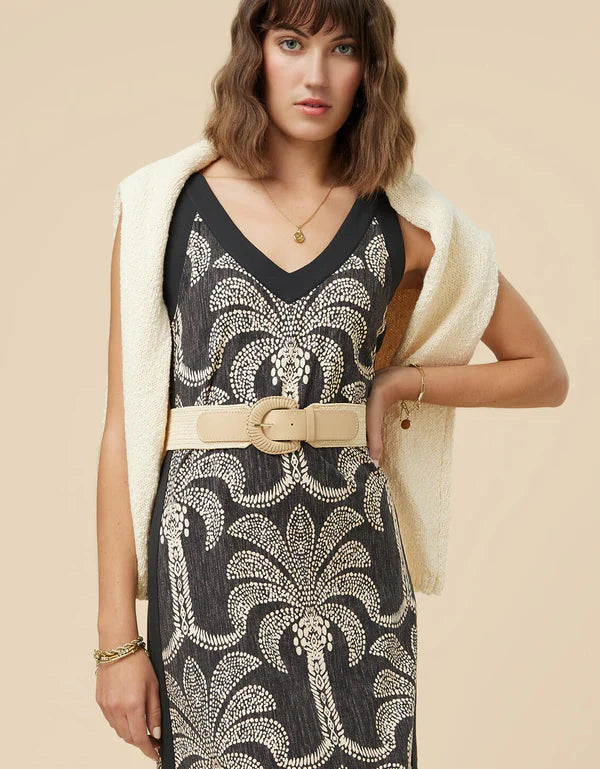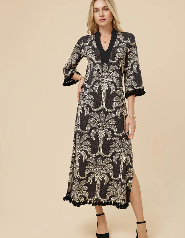 Island Fringe 3/4 Sleeve Dress Hamilton Rug Navy