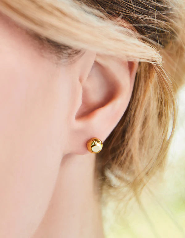 Our textured Ball Stud Earrings are a timeless style made to complement any outfit. Designed to shine through everyday wear, exercise, showers and a summer at the beach in tarnish-free 14kt gold vacuum plating.