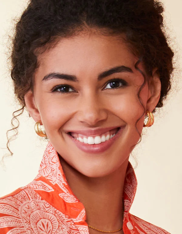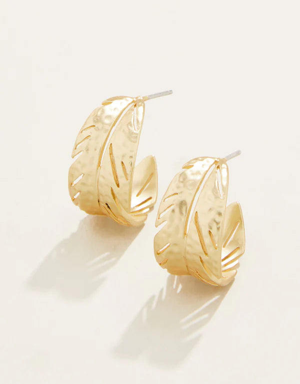 Textured leaves plated in 18kt matte gold create our resort-ready Calathea Leaf Hoop Earrings.