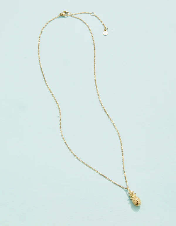 The pineapple is widely known as a symbol of gracious hospitality. All over The South, you can spot pineapples atop architecture, in home décor and now in this sticky sweet necklace as a symbol of warmth and good cheer. Designed to shine through everyday wear, exercise, showers and a summer at the beach in tarnish-free 14kt gold vacuum plating. Great for stacking or mixing and matching.