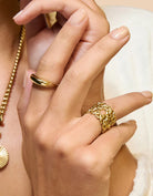 Add a touch of bold elegance with the Heyward Ring—a polished statement piece in 14kt gold vacuum plating that’s made to last.