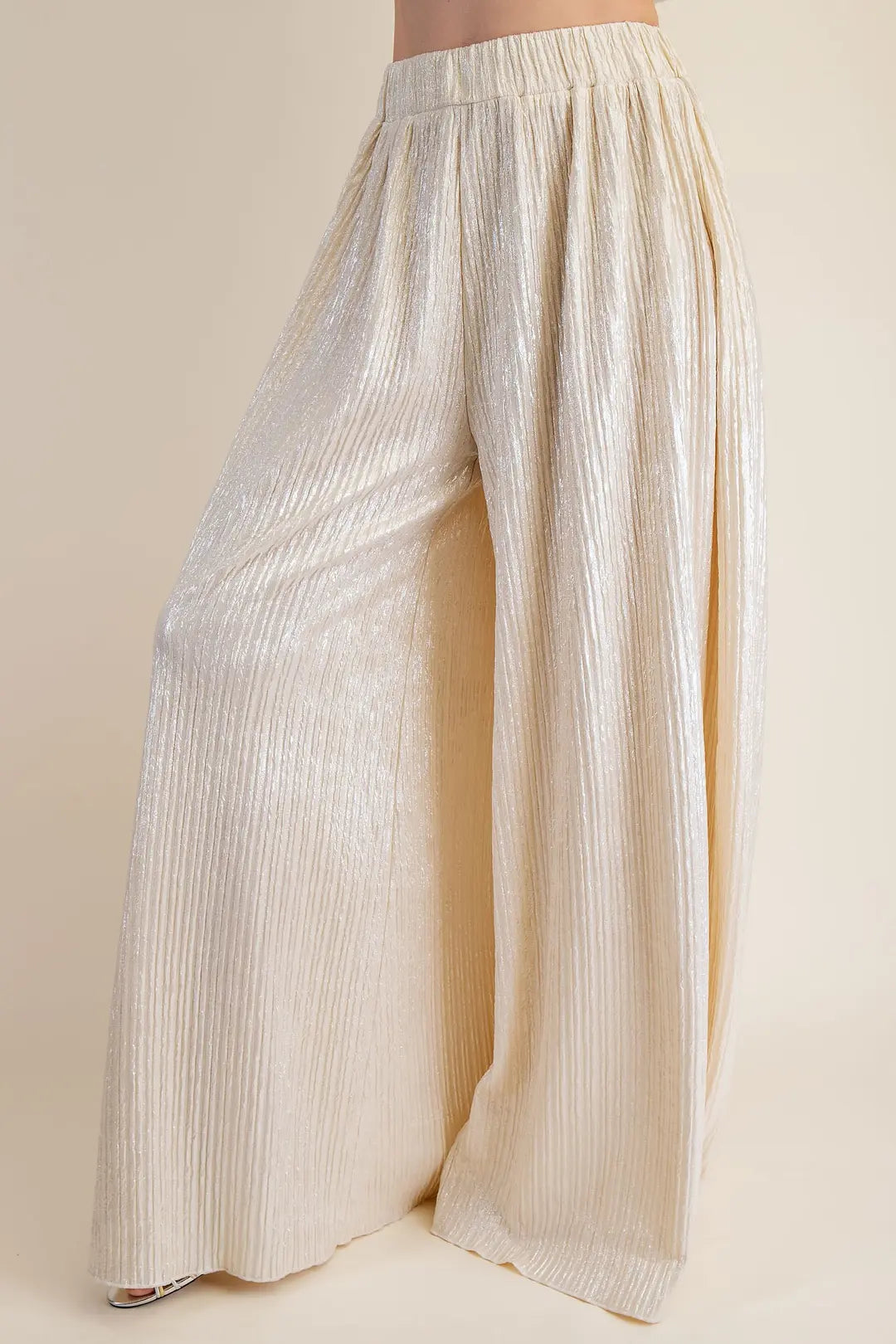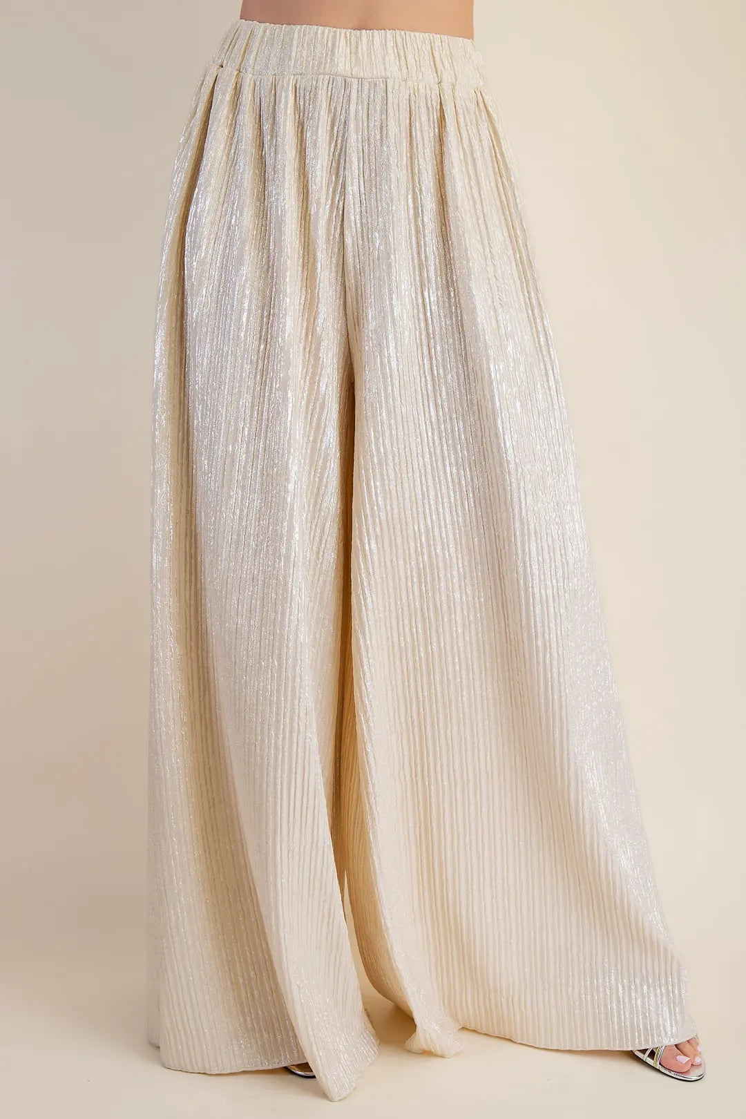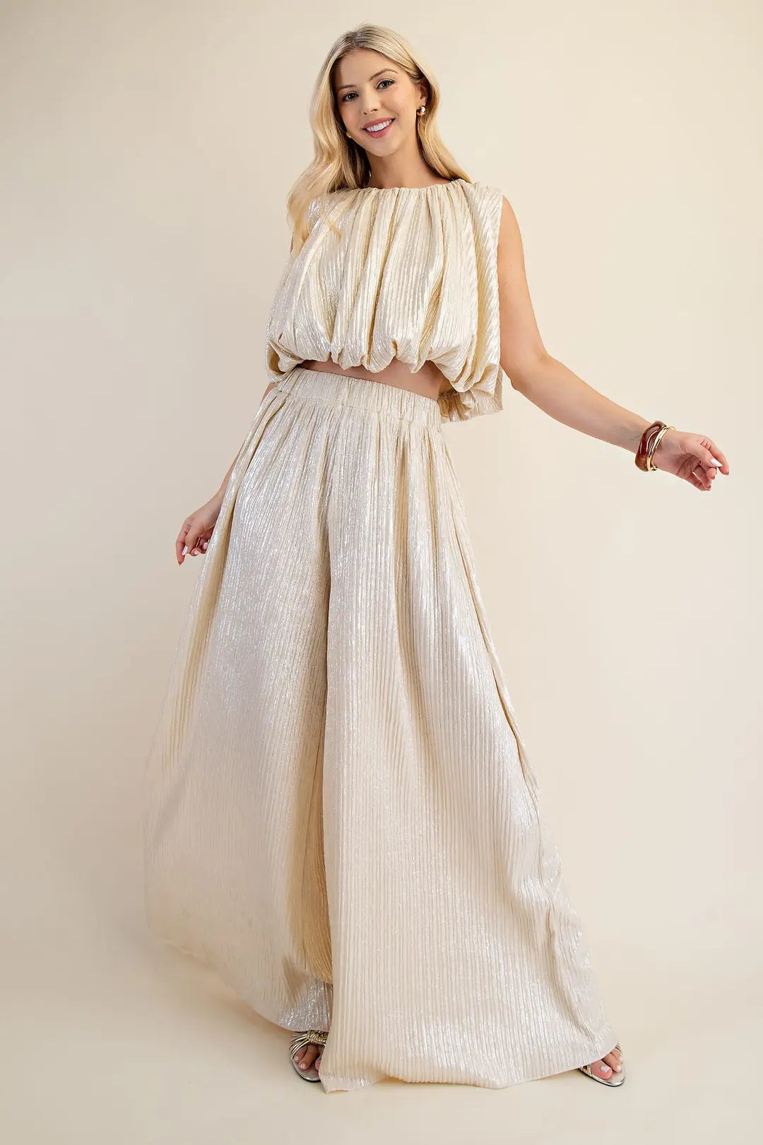 Sleeveless Bubble Top & Pleated Wide-Leg Pants Set