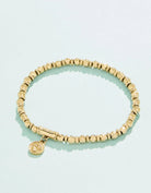 Here is a bracelet you will never have to take off! Great for stacking or mixing and matching this easy-on stretch bracelet features golden textured beads. Designed to shine through everyday wear, exercise, showers and a summer at the beach in tarnish free 14kt gold vacuum plating.