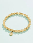 Here is a bracelet you will never have to take off! Great for stacking or mixing and matching this easy-on stretch bracelet features classic golden beads. Designed to shine through everyday wear, exercise, showers and a summer at the beach in tarnish free 14kt gold vacuum plating.