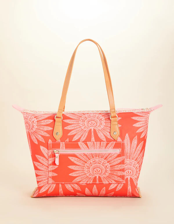 Mixing work & play? It’s easy with our laminated cotton fabric. This Zip Travel Tote has it all. The zipper top opens to a compartment roomy enough for your laptop or tablet (for that client presentation), while the zip and 2 slip pockets organize your AirPods and sunblock for some podcast time by the pool.