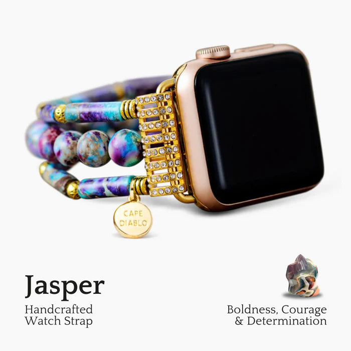 Cape Diablo watch bands are made by hand and one of a kind. Each stone has been carefully selected and we only offer gems of the best quality. After ordering the Periwinkle Jasper Stretch Apple Watch Strap, you will have possession of a truly unique handmade piece!