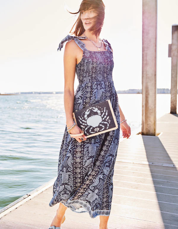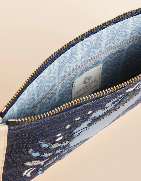 Carry the sea with you wherever you go with this slim, crab icon embroidered wristlet. Made of a woven cotton and jute blend, this wristlet was made to easily slide in and out of your bags for on-the-go convenience.