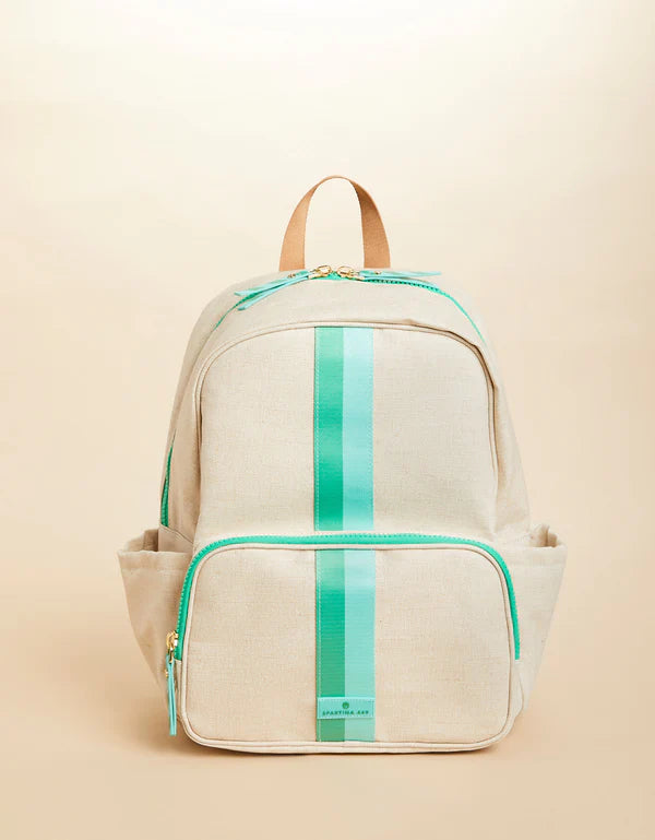 Out and about for work, school, or travel, our Tech Backpack is made to go everywhere in splash-proof, stain-resistant, laminated cotton and jute! The roomy interior features a padded 15-inch laptop pocket and more pockets for your phone, chargers, pens, water bottles, and more! This backpack features durable webbing shoulder straps that can be adjusted to fit just for you, plus a trolley sleeve and ID pocket for travel!