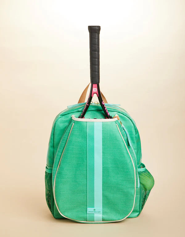 Are you ready to hit the courts in style? You can with the Spartina 449 Tennis Backpack, in durable weather-resistant, laminated cotton and jute featuring a comfortable, easy-to-carry backpack construction plus plenty of storage. You'll be the envy of every player at the tourney with your colorful Spartina gear. See you on the court for game, set, match!