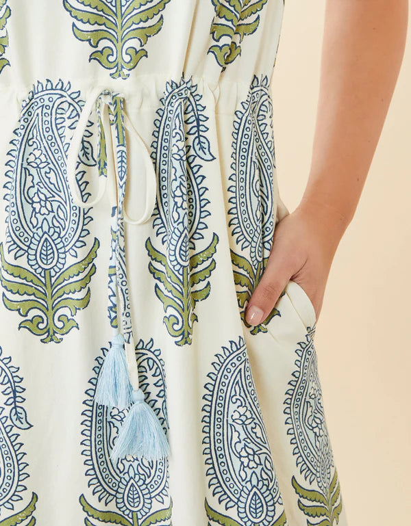The midi dress to take you from Spring to Summer and everywhere in between. Our Blakelynn Midi Dress has it all: a V-neck, flutter sleeves, pockets, a tired skirt in a midi length, and a flattering cinched waist. As if it could get any better, Blakelynn is made of soft, breezy Peruvian cotton blend in a fun paisley pattern.