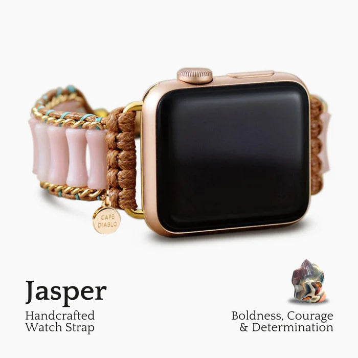 Cape Diablo watch bands are made by hand and one of a kind. Each stone has been carefully selected and we only offer gems of the best quality. After ordering the Blush Princess Jasper Apple Watch Strap, you will have possession of a truly unique handmade piece!