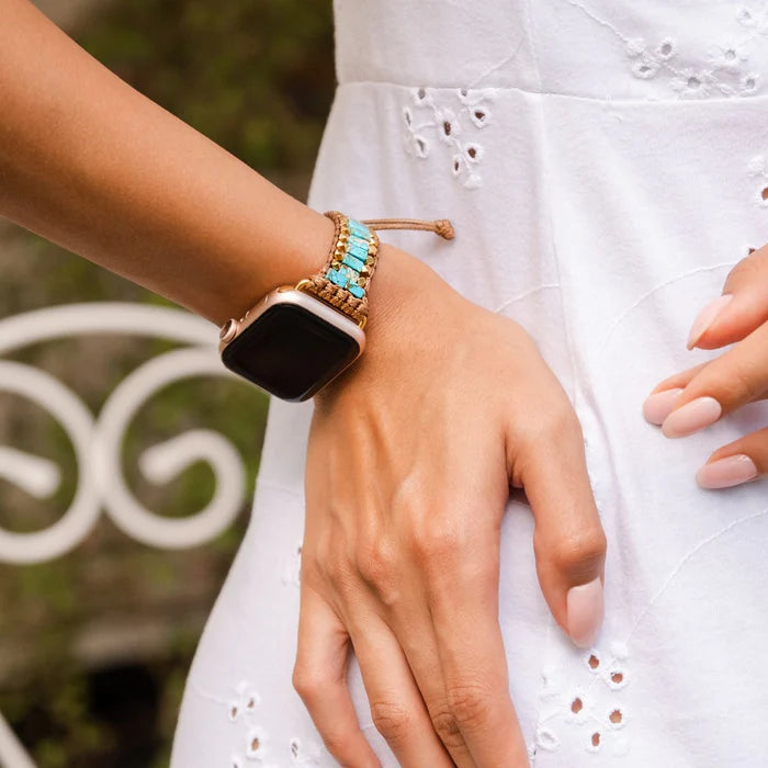 Cape Diablo watch bands are made by hand and one of a kind. Each stone has been carefully selected and we only offer gems of the best quality. After ordering the Bold Turquoise Apple Watch Strap, you will have possession of a truly unique handmade piece!