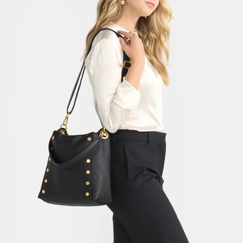 We've translated our best-loved Bryant Med into an even more spacious everyday bag. The new Bryant Lrg features plenty of room, plus a back cellphone pocket with a magnetic closure for added security. Offering enhanced organization with an additional flat pocket and accommodation for an iPad, this versatile bag can be carried on the shoulder or as a crossbody. Crafted with classic black pebbled leather.