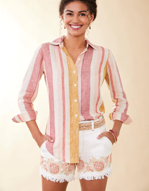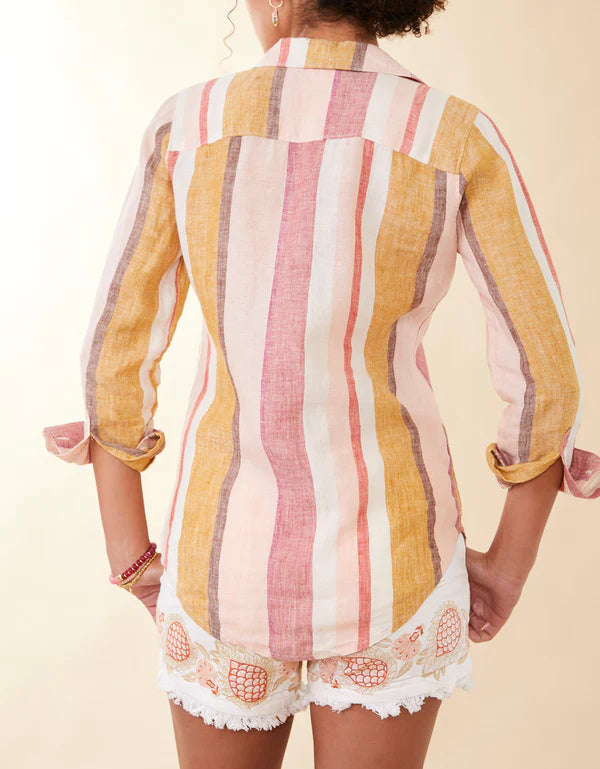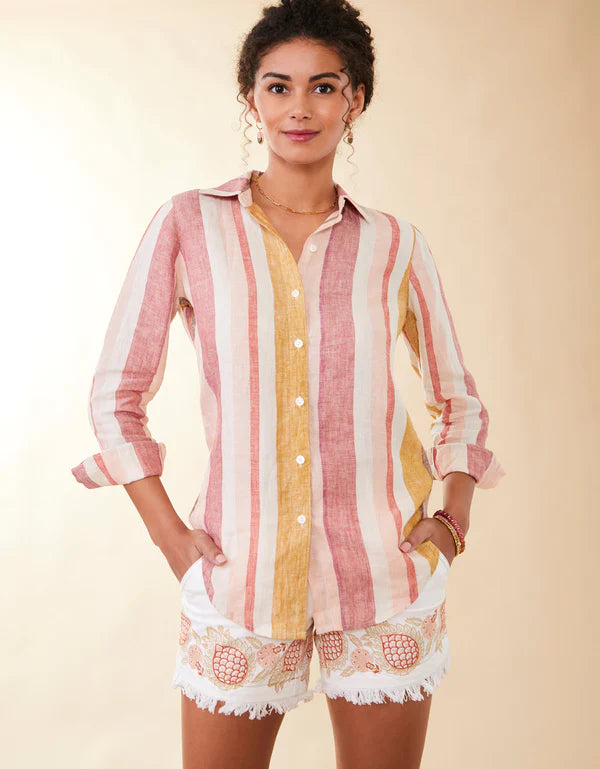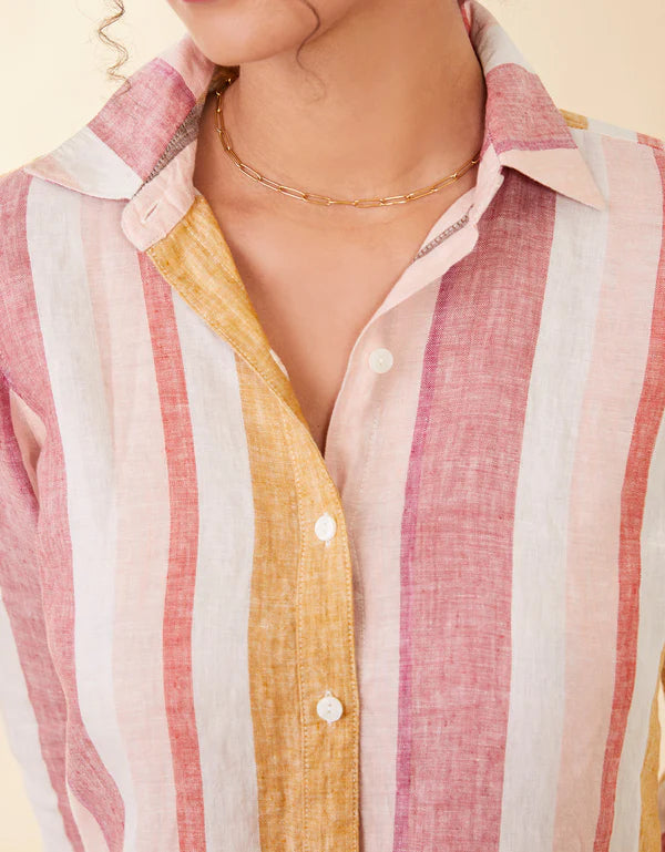 Crisp and confident, our striped Callie Linen shirt is cool when it's hot, and always chic even when it's not. Fasten the faux shell buttons & roll the sleeves for that relaxed, put-together vibe or leave the lower buttons undone over loose trousers for a slouchy, mod look.
