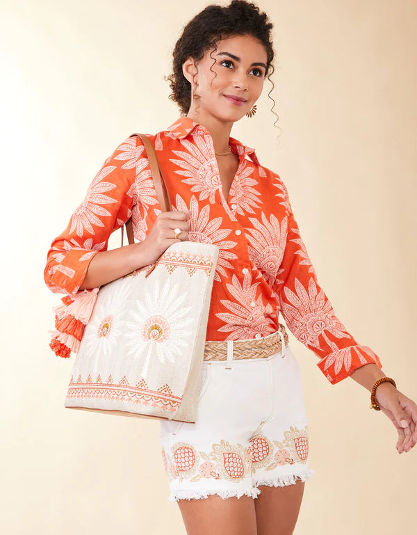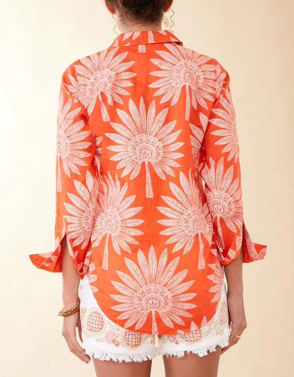 Crisp and confident, our Palmetto leaves patterned Callie Linen shirt is cool when it's hot, and always chic even when it's not. Fasten the faux shell buttons & roll the sleeves for that relaxed, put-together vibe or leave the lower buttons undone over loose trousers for a slouchy, mod look.
