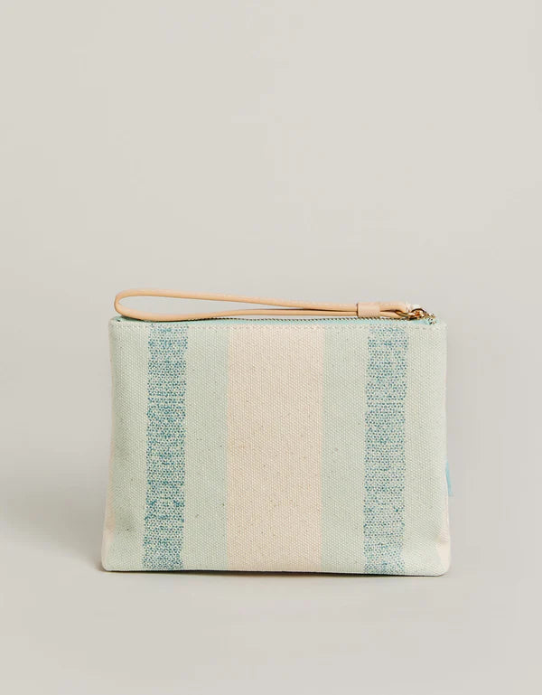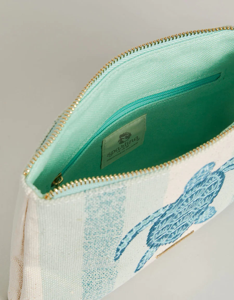 A beautiful stripe pattern and Sea Turtle embroidery is just the beginning to our thick, durable cotton canvas Carina Wristlet, which features a faux leather wristlet strap, an easy, zip-top opening, a tiered tassel, plus an interior zip pocket.