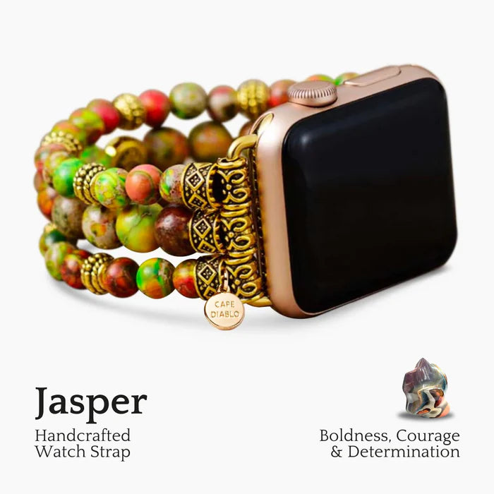 Cape Diablo watch bands are made by hand and one of a kind. Each stone has been carefully selected and we only offer gems of the best quality. After ordering the Conifer Jasper Stretch Apple Watch Strap, you will have possession of a truly unique handmade piece!