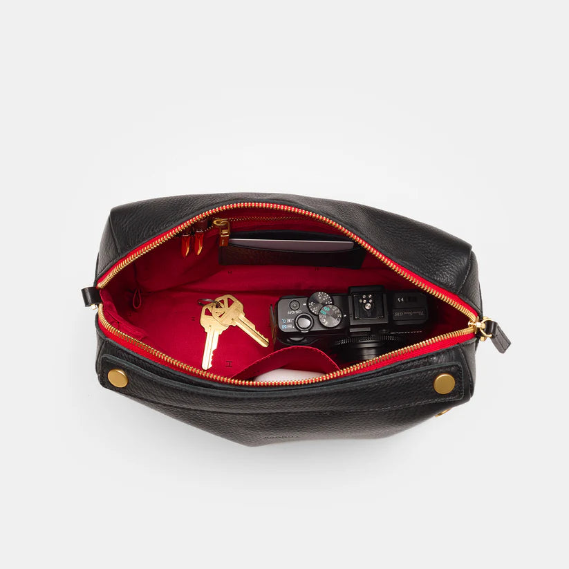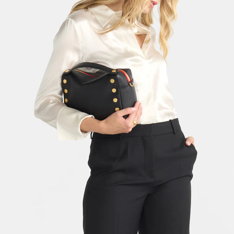 Evan Crossbody Medium - Black/Brushed Gold Red Zip