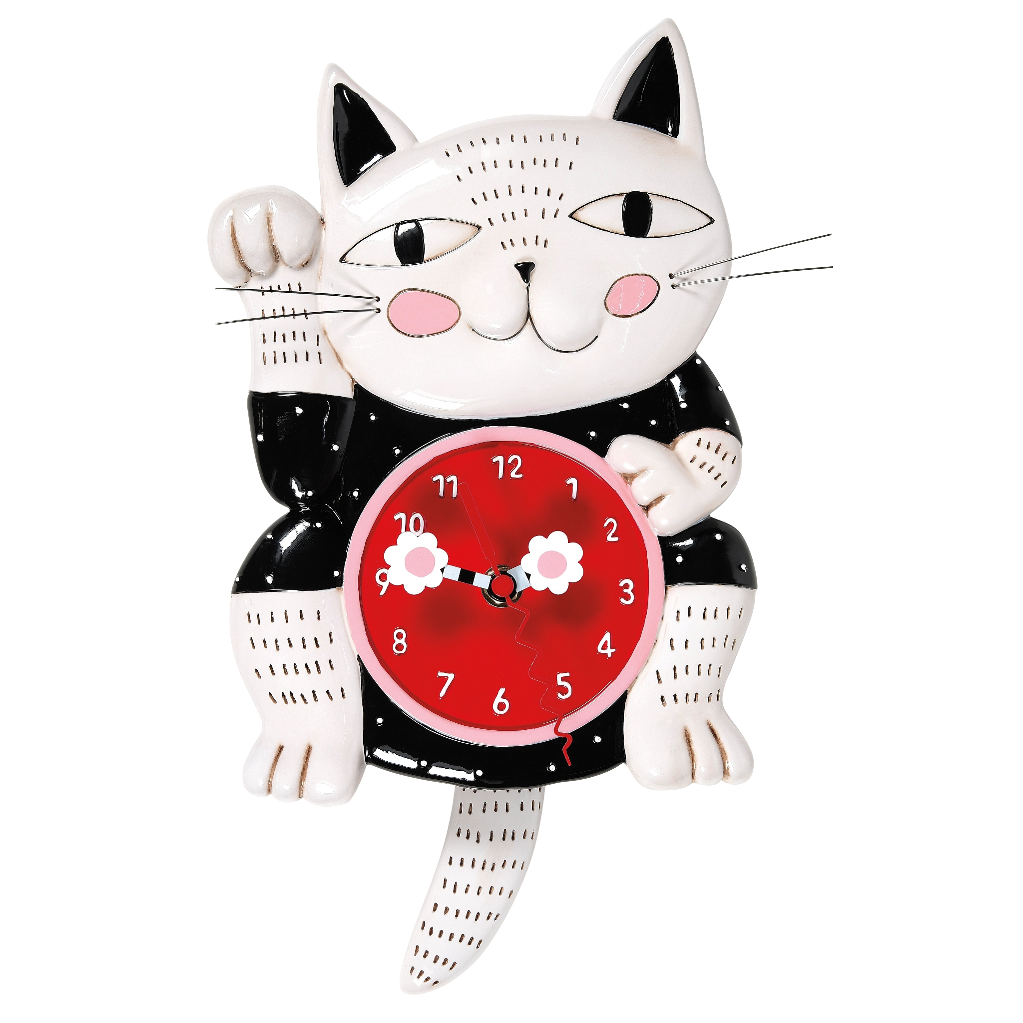 Welcome good fortune into your home with the Lucky Cat Clock, a whimsical nod to the iconic waving feline. With its charming smile and swinging paw pendulum, this hand-painted clock makes every hour feel lucky.