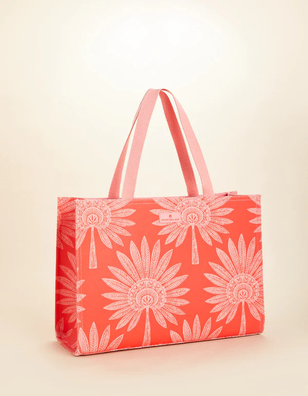 Our Market Totes are perfect for almost any occasion. These large spacious bags are simple and practical with splash-proof, stain resistant, laminated cotton. With a red palmetto design and handles that fit perfectly over the shoulder, this Market Totes is a must have!