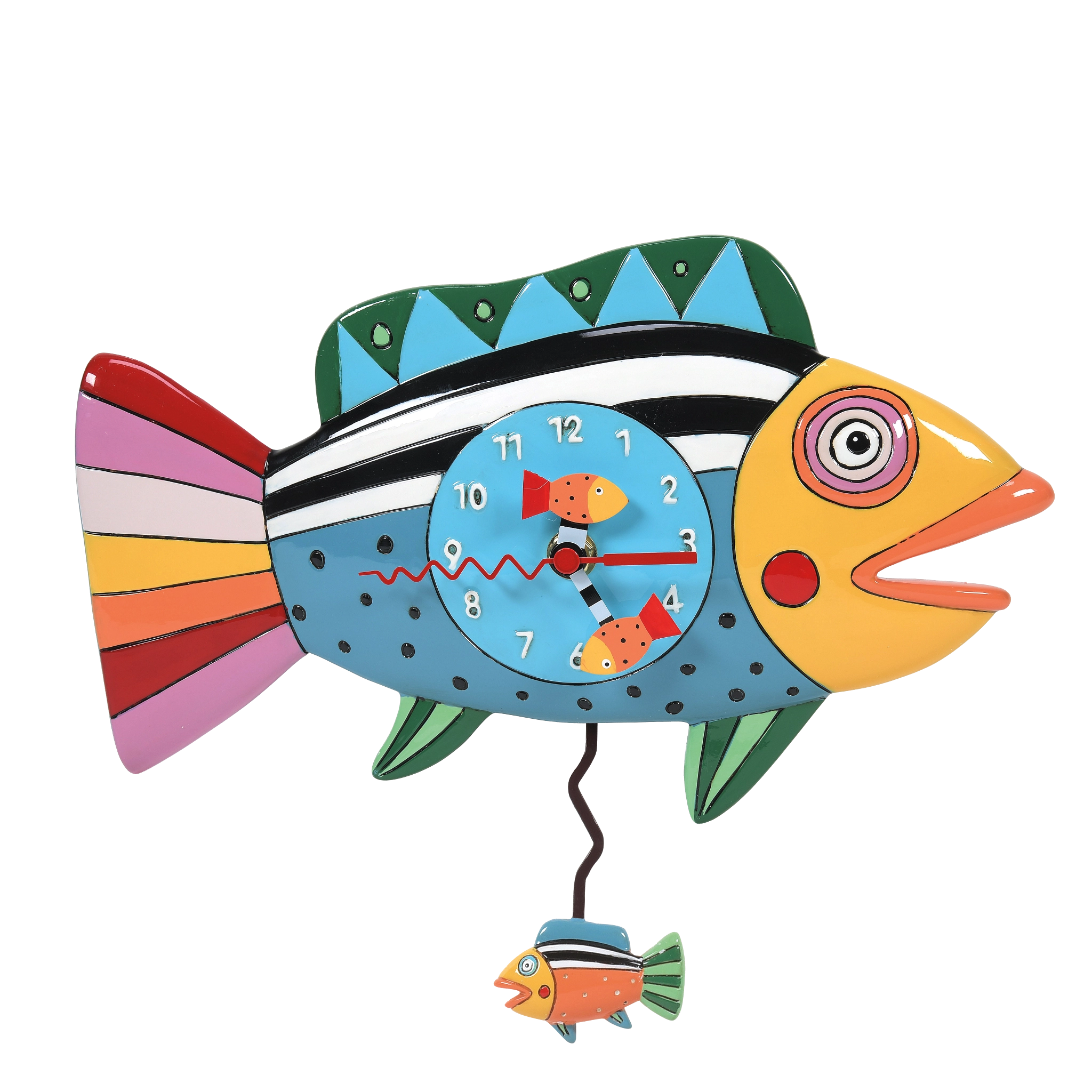 Hand-painted resin clock featuring a colorful rainbow fish design