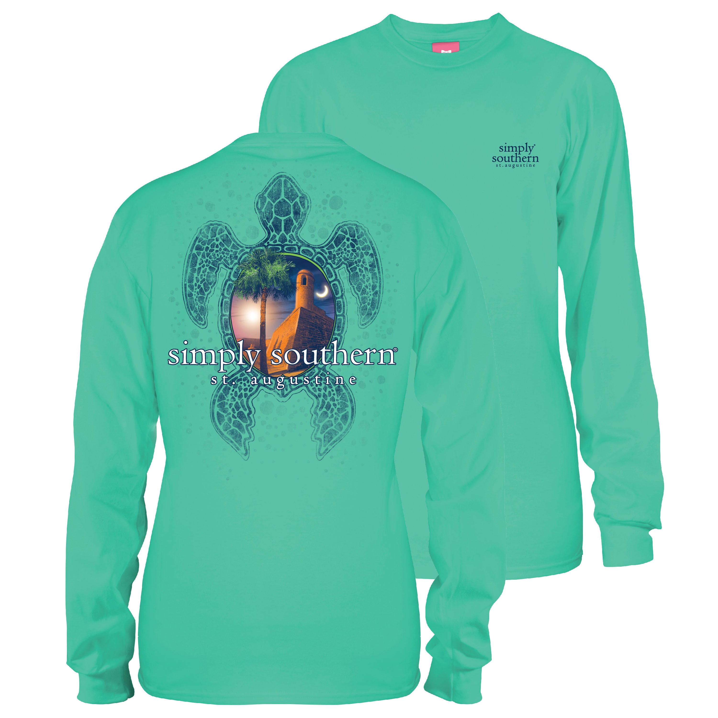 Shop our exclusive collection of custom Simply Southern St Augustine shirts. Commerate your visit to the nations oldest city with an exclusive Simply Southern design. This shirt features turtle design with a picture of the Castillo de San Marcos. The Castillo de San Marcos is the oldest and largest masonry fort in the continental United States. Available in Aruba Blue.