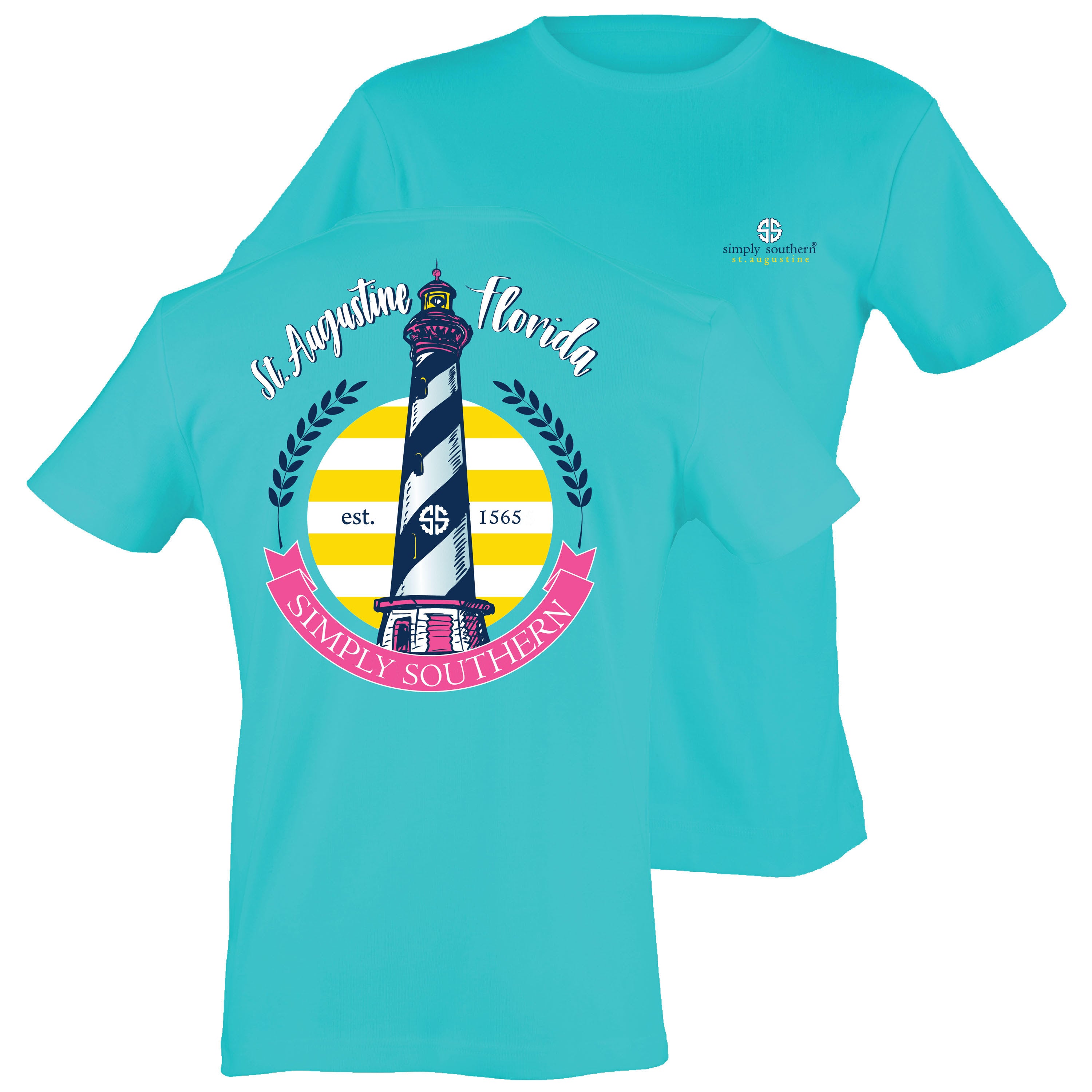 Shop our exclusive collection of custom Simply Southern St Augustine shirts. Commerate your visit to the nations oldest city with an exclusive Simply Southern design. This shirt features the famous St Augustine Lighthouse. Available in blue.