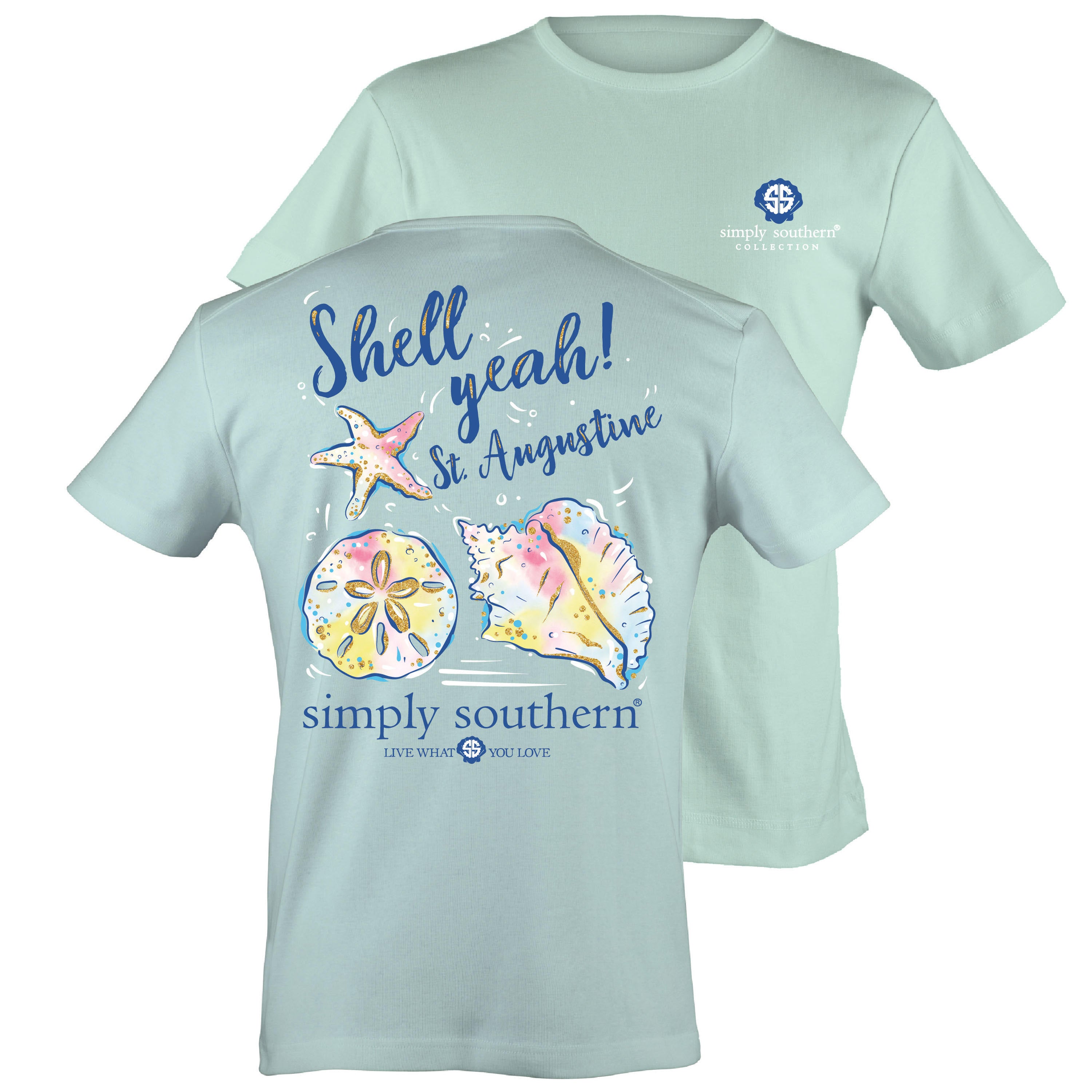Shop our exclusive collection of custom Simply Southern St Augustine shirts. Commerate your visit to the nations oldest city with an exclusive Simply Southern design. This shirt features wording Shell Yeah! St Augustine. Nautical themed and available in celedon, a beautiful blue green color.