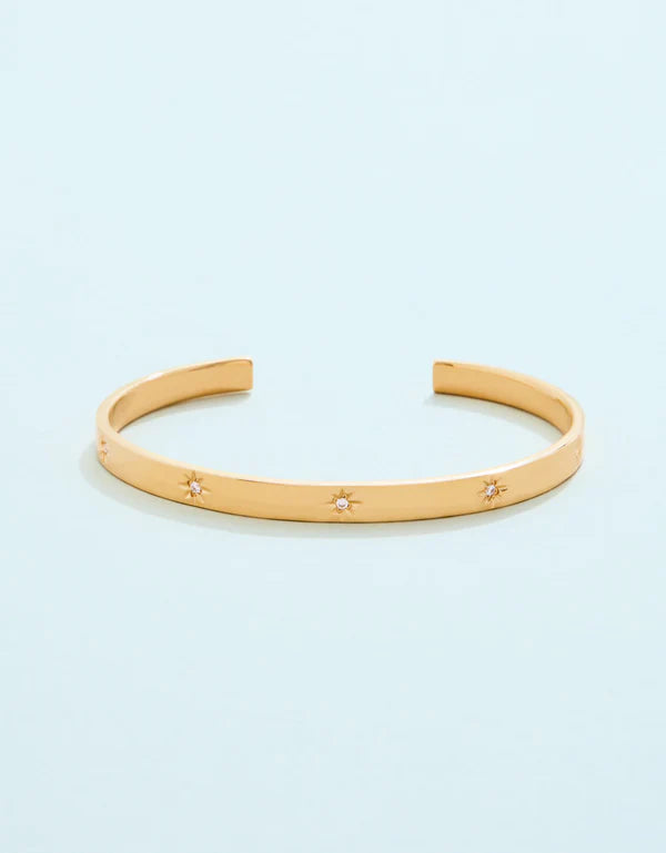 A luminous cuff that catches the light—modern shine with celestial vibes.