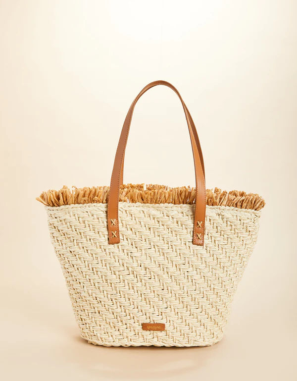It's all in the details with this Straw Fringe Tote! Natural papyrus is intricately woven together to create this always-on-vacation tote with papyrus fringe and an embroidered palmetto. Topped with a fluffy tassel!